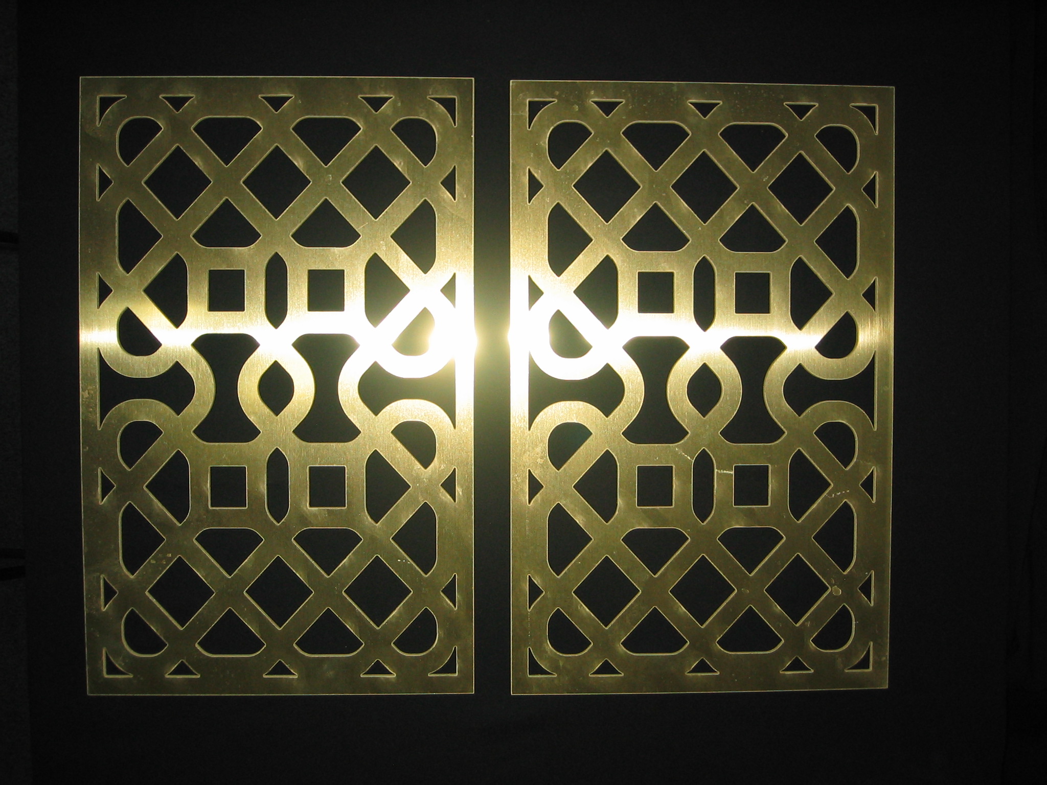 Waterjet cutting allows for the creation of quick designs that would be very costly or impossible to create with other processes. When it comes time to select a material, you will have the freedom to select from nearly any material that you would like; brass, copper, bronze, aluminum, stainless steel and mild steel can all be cut. Waterjet cutting performs well for gate and grate cutting because it allows for your artistic creations to be cut out without needing design adjustments or complex tooling. Depending on your tolerance requirements, we can also stack sheet stock to save you money and time.